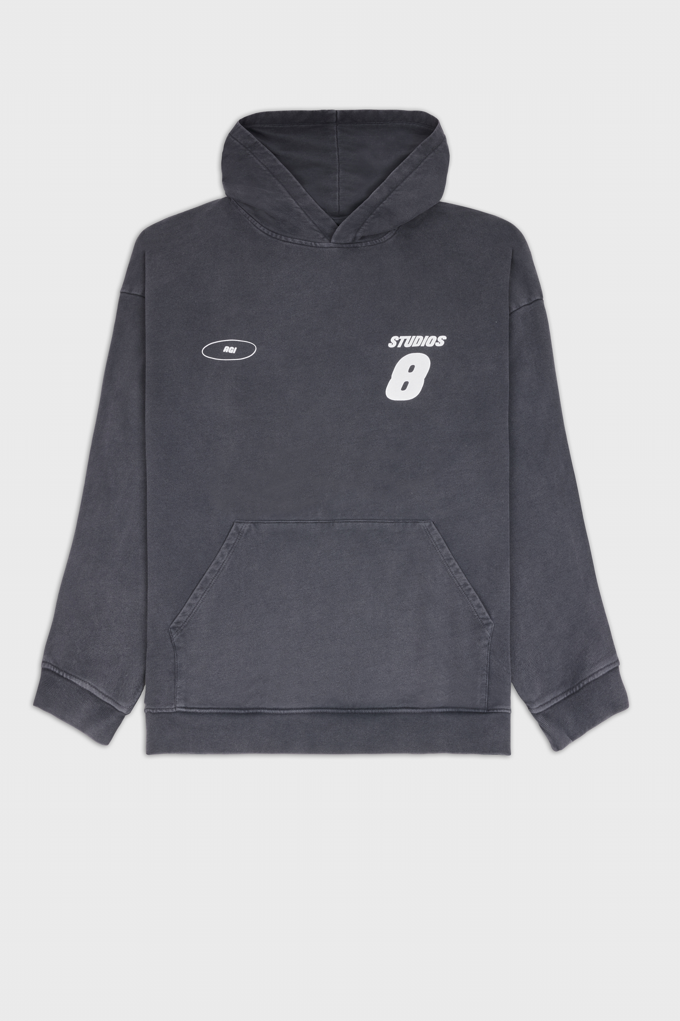 Costuras laterales reforzadas. Color lavado. Capucha de un solo dardo, sin cordones. Puños y cintura elásticos. Bolsillo canguro en la parte delantera.